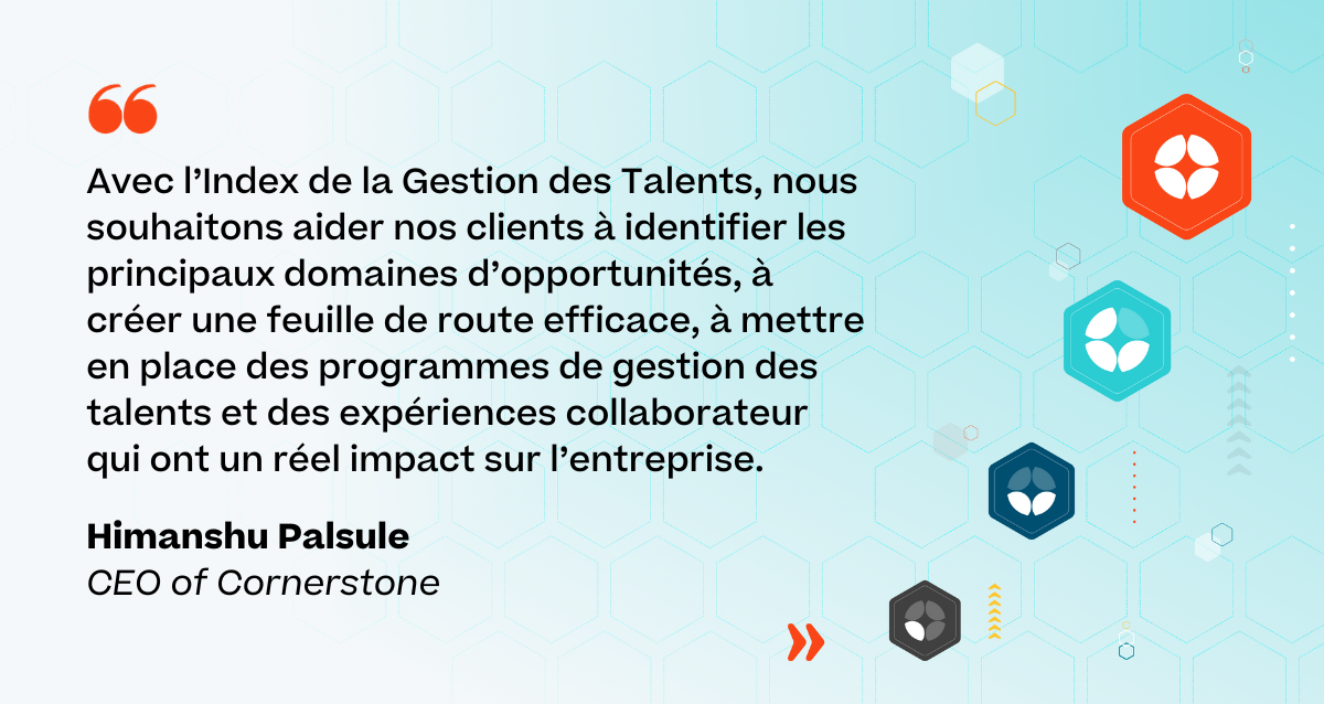 L'Index de la Gestion des Talents est un rapport du Cornerstone People Research Lab qui s'appuie sur des données et recherches rigoureuses. Il révèle que la plupart des entreprises sont à la traîne en matière de gestion des talents. Produit grâce au savoir acquis sur le terrain par plus de plus de 700 chefs d'entreprise et 1 400 employés comme vous, l'IGT cartographie le paysage complexe du développement des talents à l'échelle mondiale et guide les entreprises.
