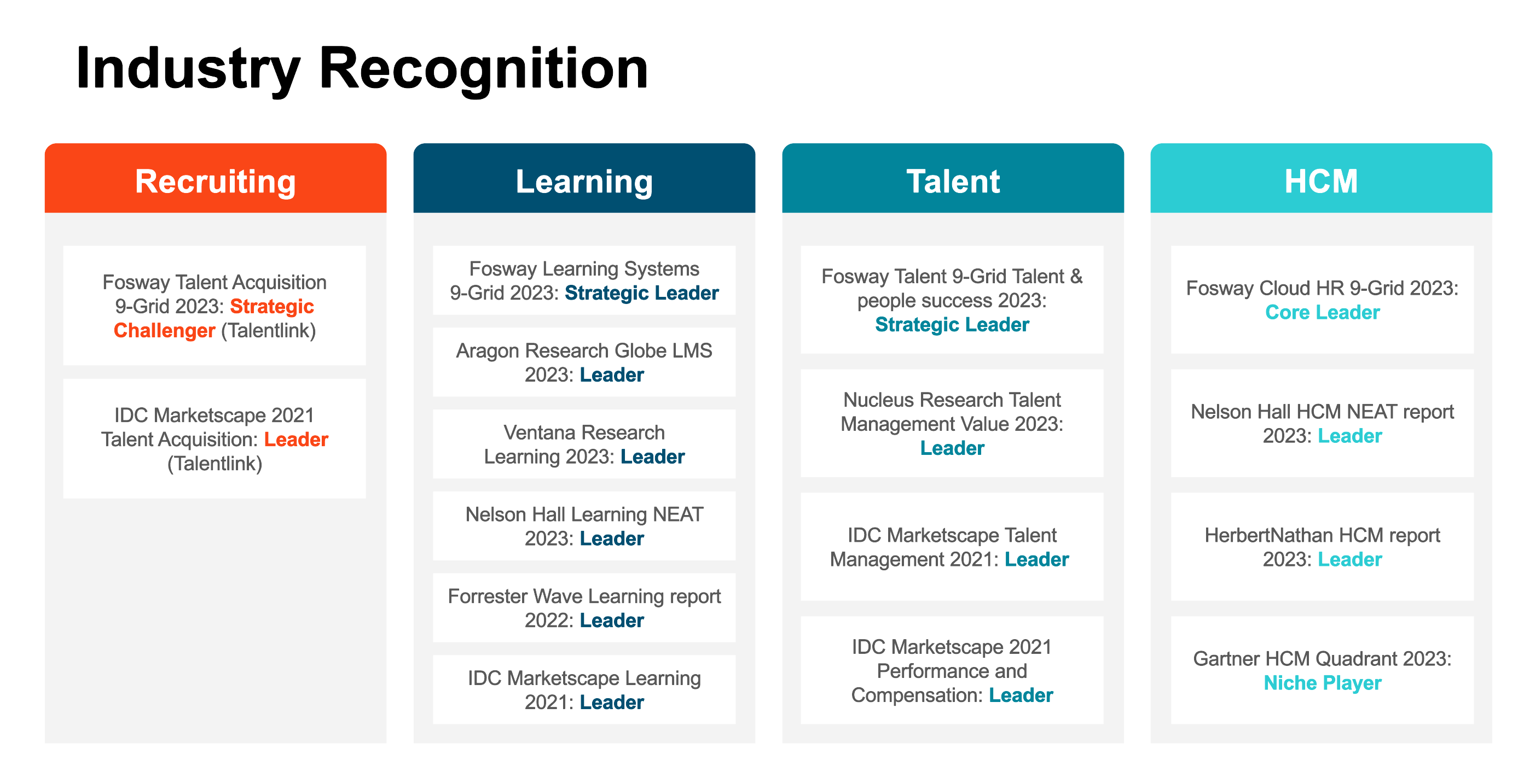 Don’t take our word for it. Here are a few of the most recent analyst accolades validating Cornerstone’s leadership position in the market: