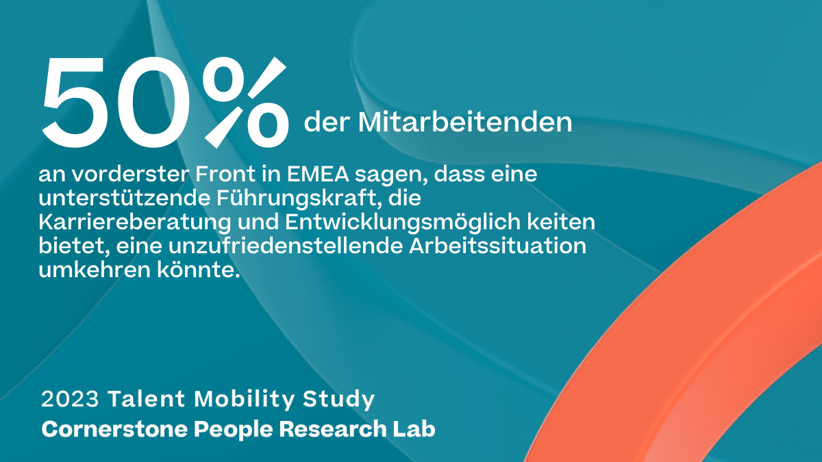 50 Prozent der Frontline-Worker in EMEA meinen, dass Vorgesetzte nicht zufriedenstellende Arbeitssituationen ins Positive wenden können, wenn sie ihren Angestellten Wachstumsmöglichkeiten bieten und sie bei der Karriereplanung unterstützen.
