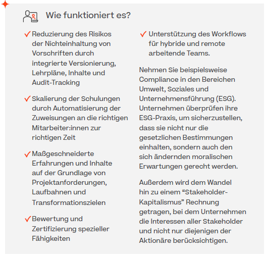 Angesichts voller Terminkalender und begrenzter Aufmerksamkeitsspannen ist es wichtig, dass Lerninhalte leicht zu verdauen sind. Microlearning, d. h. die Vermittlung von mundgerechten Informationseinheiten, ist eine wirksame Methode, um leicht verständliche Inhalte zu vermitteln, die auch im Gedächtnis bleiben. Ob durch kurze Videos, ein interaktives Quiz oder andere Formate – Microlearning ermöglicht es den Lernenden, neues Wissen schnell aufzunehmen und anzuwenden.