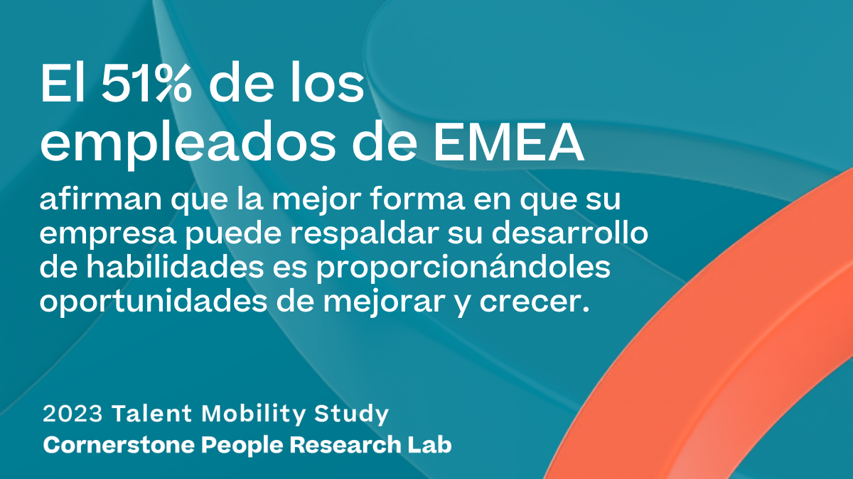 El 51% de los empleados de EMEA afirman que la mejor forma en que su empresa puede respaldar su desarrollo de habilidades es proporcionándoles oportunidades de mejorar y crecer.