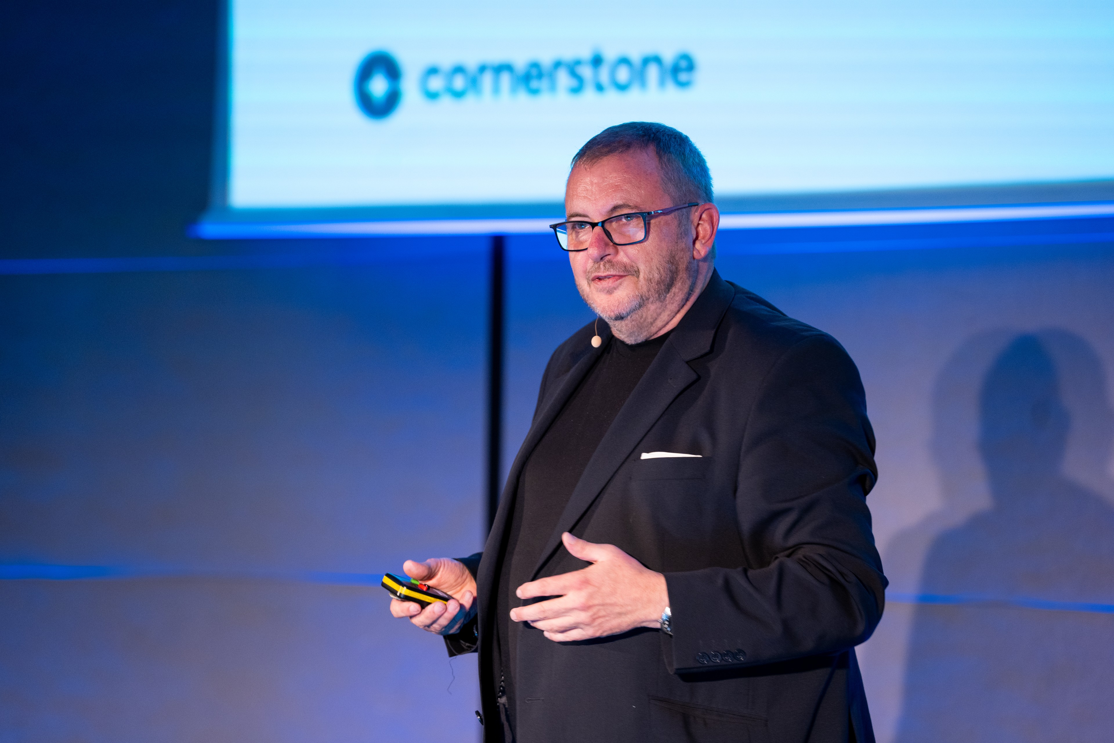 Alors que Corinne Bidallier, notre MC et VP France, accueillait et remerciait les invités d'avoir participé à l'événement, Vincent Belliveau, Chief International Officer de Cornerstone, a donné le coup d'envoi de la conférence en parlant de l'évolution rapide du monde du travail et de la façon dont la préparation de la main-d'œuvre est cruciale pour la survie et le succès des entreprises. Vincent a donné un aperçu de ces défis et de l'urgence d'adopter ce qu’on l’on nomme la Workforce Agility, ou en français l'agilité de la main-d'œuvre.