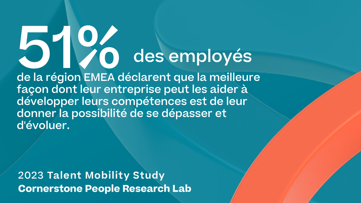 Réalisée en partenariat avec Lighthouse Research & Advisory, la nouvelle étude publiée récemment par le Cornerstone People Research Lab dévoile comment les entreprises peuvent étancher la soif de développement de leurs employés. Selon le rapport intitulé « À vos marques ! Prêts ? Grandissez ! Les fondements de la mobilité de talents à fort impact », 70 % des employés affirment être plus susceptibles de rester dans une entreprise qui leur offre des possibilités de formation et d'apprentissage continus.