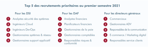 Phénomène notable, les entreprises qui recrutent le font avant tout pour traiter les nouvelles priorités qui ont émergé pour elles durant la pandémie. S’adapter aux nouveaux modes de fonctionnement créés ou accélérés par le Covid-19 est un élément clé de leur reconstruction.