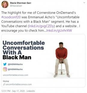Per vedere le sessioni a cui non hai potuto partecipare durante la conferenza, visita: www.cornerstoneconvergence.com. Tieni viva la conversazione! Segui Cornerstone Convergence 2020 sui social media, visitando: Twitter @CSODConvergence, Instagram @CornerstoneOnDemand e Facebook @Cornerstoneconvergence. Puoi partecipare alla conversazione usando l’hashtag #CSODConf20.