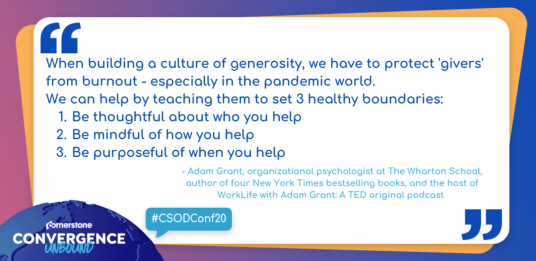 A conclusione del secondo giorno di Convergence e dell’intera conferenza, lo psicologo del lavoro Adam Grant, autore di bestseller e del podcast originale TED WorkLife, è salito sul palcoscenico virtuale per condividere i suoi consigli su come coltivare una personalità generosa, essenziale per una cultura aziendale positiva e resiliente.