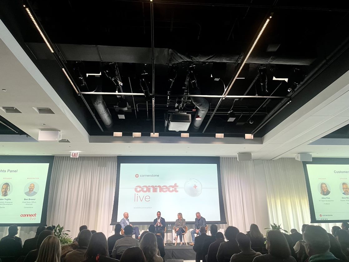 The room was filled with listeners looking to hear more as we asked each HR and learning leader about the trends that are shaping their industries and driving their strategies. We learned more about the ways in which they have partnered with Cornerstone to deliver the art of the possible for their organizations, and engaging experiences for their people at work. It was an exceptional moment of peer inspiration for all that could attend.