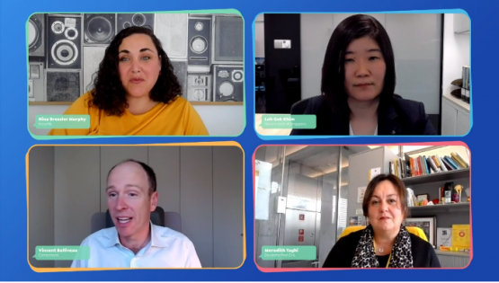 One other critical ingredient for the new normal? Learning. In a panel discussion on Creating A Scalable Skills Development Culture, Vincent Belliveau connected with Meredith Taghi, from Deutsche Post DHL, Nina Bressler Murphy, from Novartis Learning Institute and Loh Gek Khim, from the Singapore Skills Framework. The conversation focused on how “skills are really the currency of the future” to power people development that in turn powers organisational growth and business transformation through skills mastery.