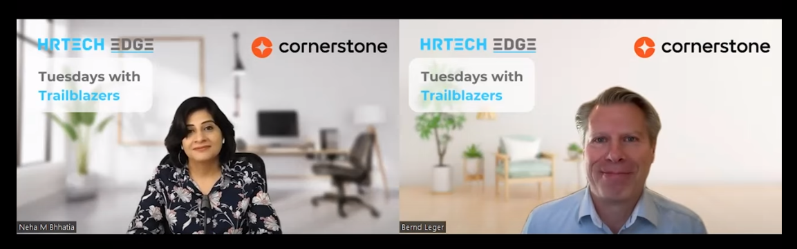 In the latest installment of HRTech Edge Tuesdays with Trailblazers, host Neha M. Bhhatia sat down with Cornerstone Chief Marketing Officer Bernd Leger for an insightful session on emerging workforce trends. With over 25 years of leadership experience in the global technology industry, Bernd has a proven track record in developing and executing go-to-market plans, resulting in double- and triple-digit revenue growth across various SaaS organizations.