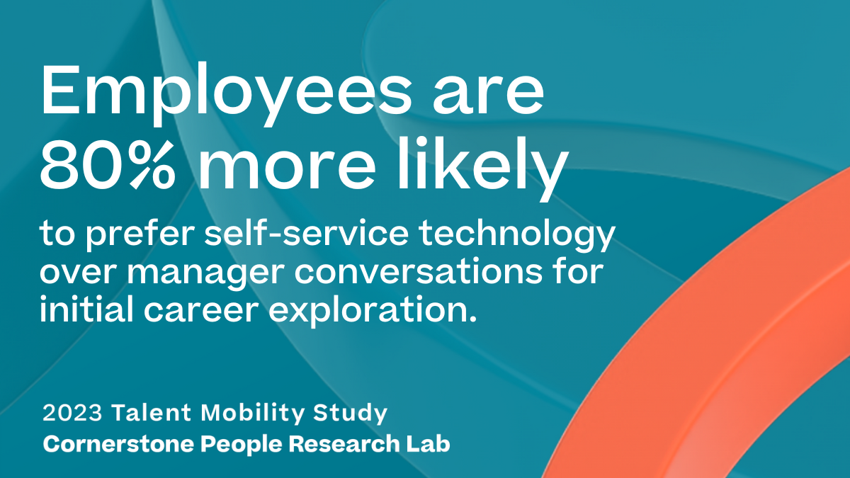 HR technology has amazing impacts on talent mobility. Eubanks shared that 80% of employees prefer self-service technology to initially explore career opportunities, more so than speaking with a manager.