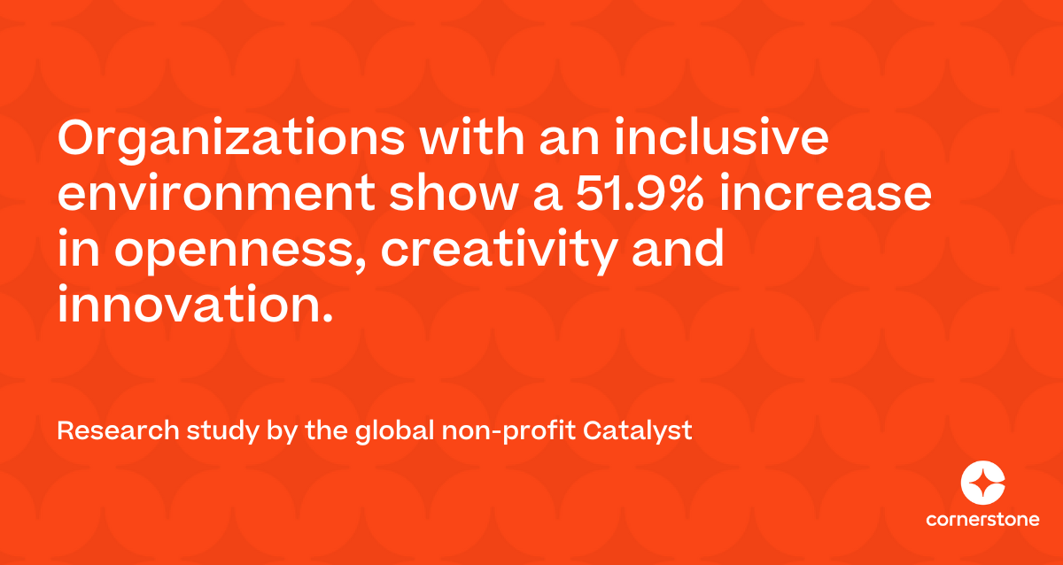 And a research study by the global non-profit Catalyst found that organizations with an inclusive environment show a 51.9% increase in openness, creativity and innovation. Employees who feel seen, heard, respected and safe in the workplace are more likely to bring their whole selves to work, contribute more and stay longer.