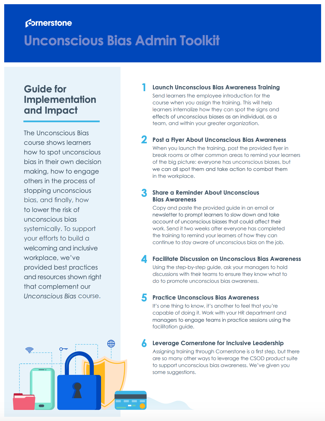 If you’re interested in learning more about how to increase employee engagement around your training initiatives, check out Cornerstone’s Activation Materials. These include email templates, posters, activities and discussion guides that anyone can use to help their employees transfer what they learn to their work. Below is an example of Activation Materials for Grovo’s Unconscious Bias program.
