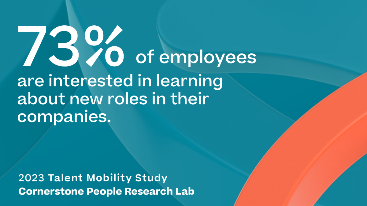 Short-term and long-term career paths that combine managers, culture and technology into a cohesive talent mobility strategy for your people are vital to success in 2023. Our research found that 73% of employees are interested in learning about new roles and using technology is an effective way to improve visibility into those roles.