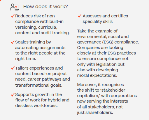 According to PwC, 77% of adults would learn new skills or retrain to improve their future employability. In the face of rapidly changing technology and the need to retrain and redeploy talent, it’s important for businesses to focus on skills development. By reorienting the business around skills, HR teams can better understand, develop and provision talent to meet business needs. This shift towards skills-based learning and development (L&D) allows for more fluid roles, interests and workflows, giving employees the freedom and creativity to thrive.
