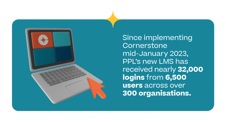 Since implementing Cornerstone mid-January 2023, PPL’s new LMS has received nearly 32,000 logins from 6,500 users across over 300 organisations. Numerous organisations have reached out to PPL praising the new LMS’ user experience, the drastic improvement in the quality of video content, and how it drives learner engagement.